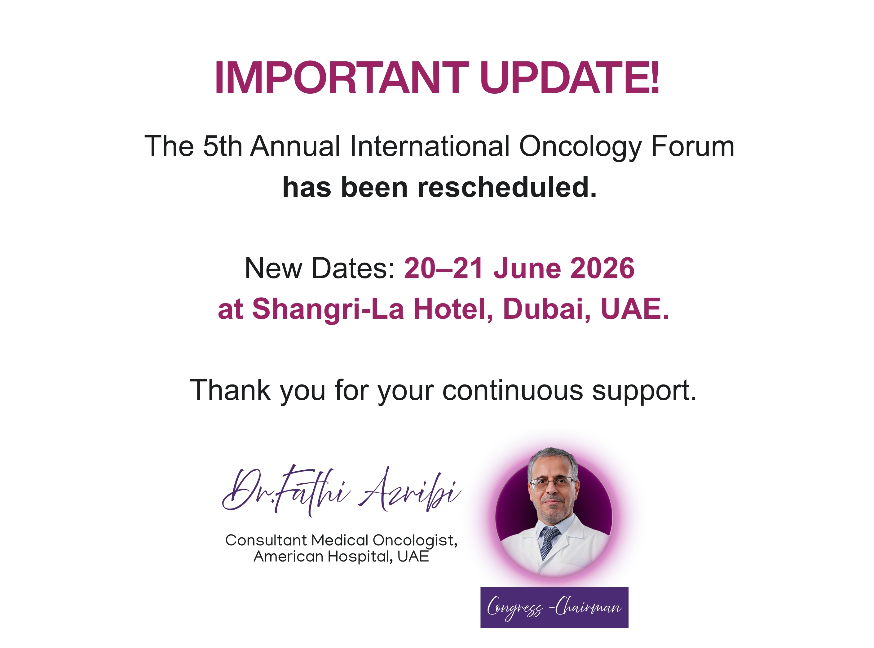 The 5th Annual International Oncology Forum is a focused scientific meeting highlighting the pivotal role of oncology in modern cancer care. The program presents the latest updates & clinical guidelines across Breast, Lung, Brain, Gastrointestinal, Genitourinary, and Gynecological cancers, with an emphasis on real-world application in daily oncology practice.